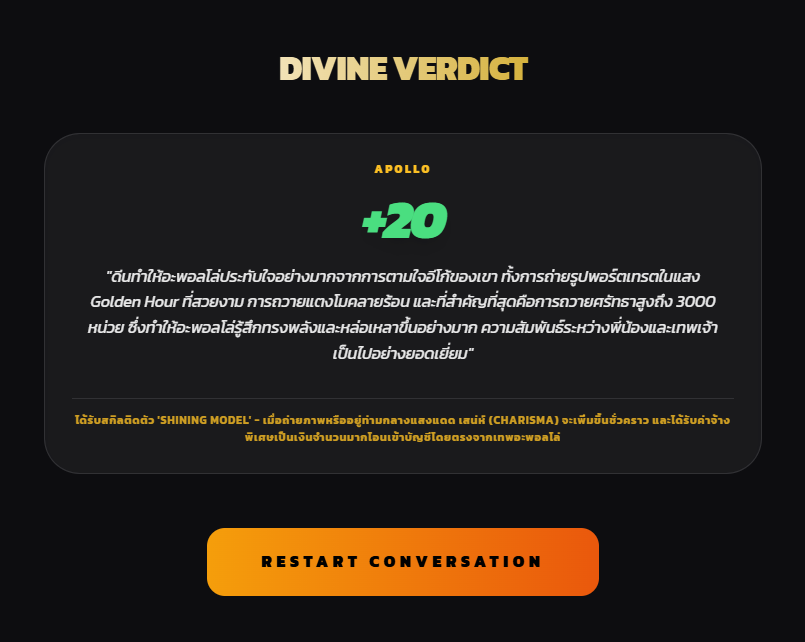 คุณได้รับความสัมพันธ์กับ [God-09] อะพอลโล เพิ่มขึ้น 210!