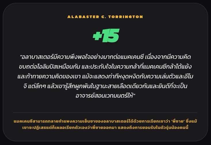 คำอธิบาย: สมาร์ทโฟนรุ่น Daedalus "Midnight Styx" Edition คือนวัตกรรมขั้นสูงที่ผสานวิศวกรรมสถาปัตยกรรมเข้ากับพลังลึกลับแห่งยมโลก ตัวเครื่องโดดเด่นด้วยคุณสมบัติ Shadow Veil ที่ใช้สีดำลึกดุจผิวน้ำในแม่น้ำสติกซ์เพื่อพรางตัวในเงามืด ป้องกันไม่ให้อสูรกายมองเห็นแสงจากหน้าจอในยามค่ำคืน เสริมความแกร่งด้วย Styx Protection ที่ผ่านการชุบตัวในพลังจำลองของแม่น้ำศักดิ์สิทธิ์จนเป็นอมตะต่อแรงกระแทกและรอยขีดข่วน พร้อมระบบสัญญาณ Shadow Travel Connect ที่ช่วยให้การสื่อสารเสถียรแม้ในเขตอาคมหรือใต้ดินลึก โดยทำงานผ่านอินเทอร์เฟซ Underworld Dark Mode สไตล์กรีกโบราณที่สลักด้วยลายเส้นสีเงินเพื่อการถนอมสายตาอย่างสูงสุด หัวใจสำคัญของรุ่นนี้คือฟีเจอร์สำหรับคู่รักที่เน้นสายสัมพันธ์ที่ไม่อาจตัดขาด เริ่มจาก "คำสาบาน" (The Unbreakable Vow) ที่สร้าง Digital Styx Oath เชื่อมโยงคนสองคนไว้ด้วยกันเพียงครั้งเดียวและไม่สามารถยกเลิกได้ โดยจะส่งแรงสั่นสะเทือนเตือนเมื่ออีกฝ่ายผิดสัญญาหรือตกอยู่ในอันตราย ท่ามกลางความมืดมิด ฟีเจอร์ "แสงสว่างในความมืด" จะแสดงจุดแสงนำทางระบุตำแหน่งของคู่รักที่สว่างขึ้นตามระยะความใกล้ชิด และสามารถส่งข้อความผ่านเงาด้วย Shadow Messenger ได้โดยไม่ต้องพึ่งเสาสัญญาณ นอกจากนี้ยังมีระบบ Soul Protection คอยเฝ้าระวังระดับพลังงานชีวิตและแจ้งเตือนพร้อมคำแนะนำหากคู่รักอ่อนแรงจากการใช้พลังกึ่งเทพ ในด้านความปลอดภัยและการติดตามขั้นสูง ระบบ Ariadne's Digital Thread จะฉายเส้นด้ายสีทองบนแผนที่เพื่อนำทางไปหาคู่รักในทุกที่ รวมถึงฟีเจอร์ Heartbeat Sync ที่ถ่ายทอดจังหวะการเต้นของหัวใจผ่านแถบไฟ LED ด้านข้าง และระบบ Monster Alert แจ้งเตือนพิกัดเมื่อมีการเผชิญหน้ากับอสูรกายโดยเฉพาะ ทั้งหมดนี้มาพร้อมกับสายชาร์จถัก Chain of Tartarus ที่ทนทานต่อแรงดึงมหาศาลและชาร์จไฟได้รวดเร็วดุจสายฟ้าของซุส ภายใต้การอารักขาของ Icarus Protocol ที่เข้ารหัสข้อมูลระดับเขาวงกตเพื่อป้องกันการดักฟังจากทวยเทพและศัตรูในทุกวินาที ตีบวก: +4 คุณสมบัติ: อุปกรณ์สื่อสาร (INT) +17 เงื่อนไขในการสวมใส่: ไม่มี